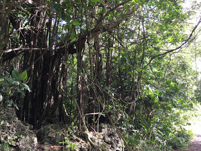 This is the big O'va va tree. It sends down vines of heavy roots. Looks like the trees in the jungle Tarzan used to swing from tree to tree on.